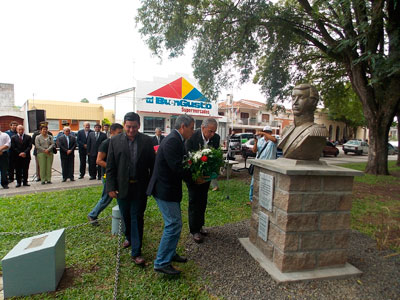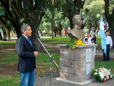 En primer término, se descubrió el busto del Cnel. Genaro Berón de Astrada ubicado en un extremo de la histórica plaza Belgrano y que fue realizado por el artista José Kura, con fondos recaudados por la Comisión Mártires de Pago Largo y el aporte del Honorable Concejo Deliberante y el municipio de Curuzú Cuatiá.
