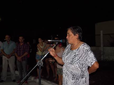 Seguidamente, la Esc. Beatriz Chamorro de Mastrocésare agradeció en nombre de los vecinos de la cuadra al Sr. Intendente Lalo Domínguez por hacer realidad el sueño del pavimento.