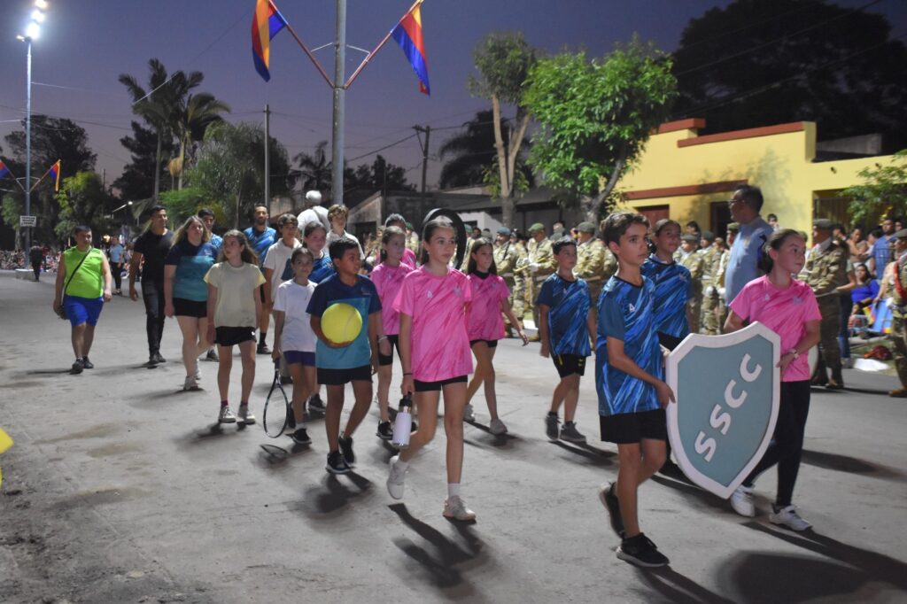 El desfile, que se extendió por más de tres cuadras, fue un reflejo de la pujanza y la diversidad de nuestra comunidad. Cientos de integrantes de decenas de instituciones locales, entre ellas establecimientos educativos de todos los niveles, clubes deportivos, ballets y entidades culturales, marcharon ante el aplauso sostenido de los presentes, demostrando el orgullo de pertenecer a la Sucursal del Cielo.