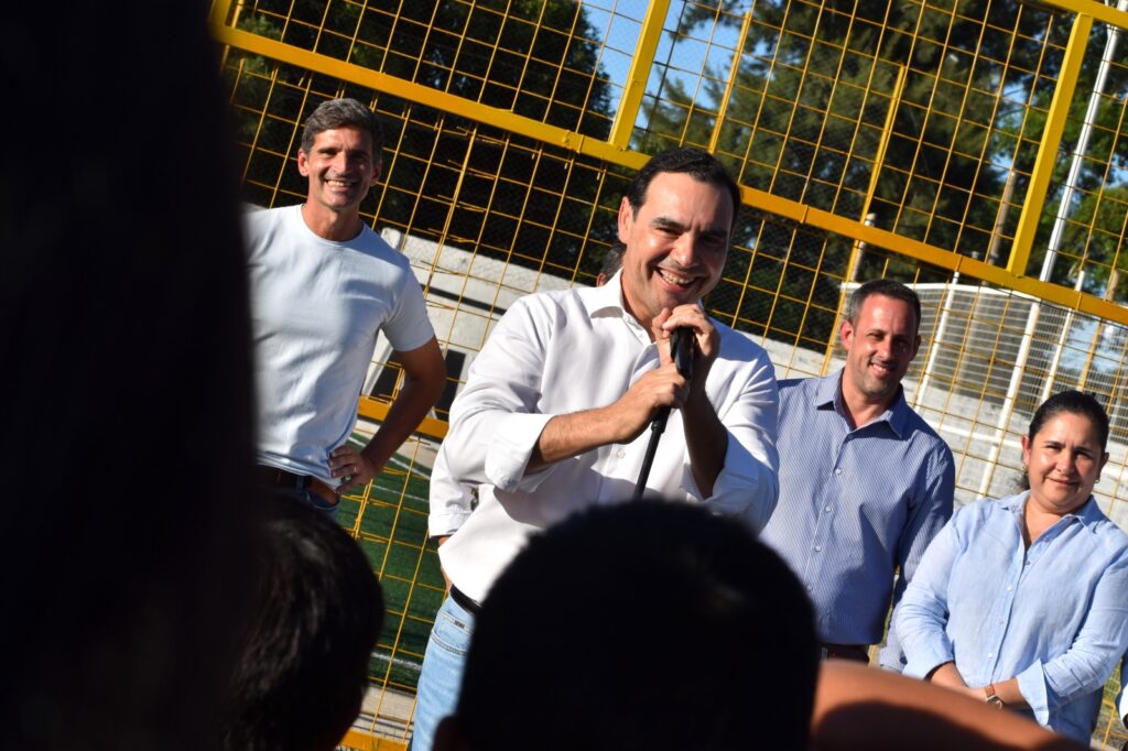 El miércoles 4, se inauguró la nueva cancha de fútbol 5 con césped sintético y sistema de iluminación de alta potencia en el Club Belgrano. El Presidente de la entidad, Sr. Diego Bernardoni, agradeció el respaldo provincial y municipal. El corte de cintas, realizado junto a jóvenes de las categorías formativas, simbolizó una apuesta directa al futuro del “aurinegro”.