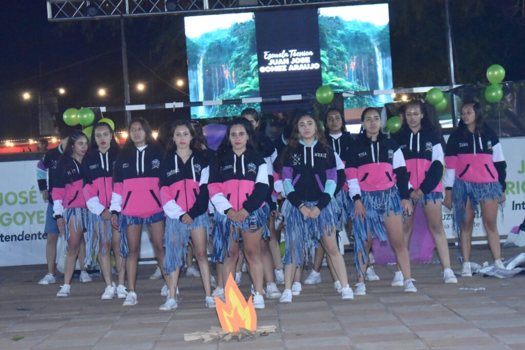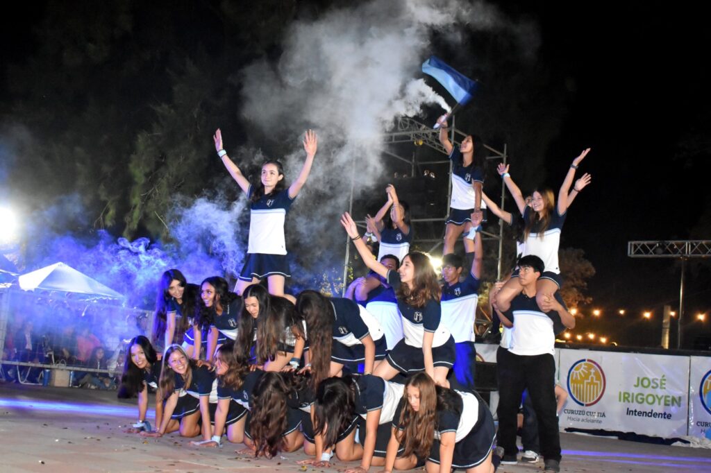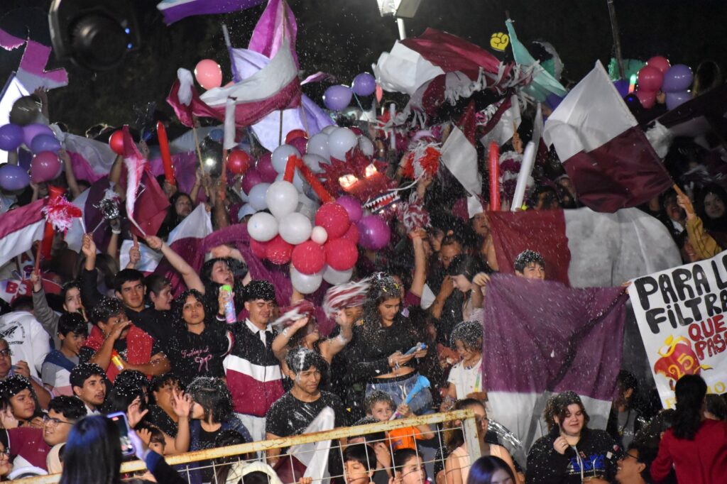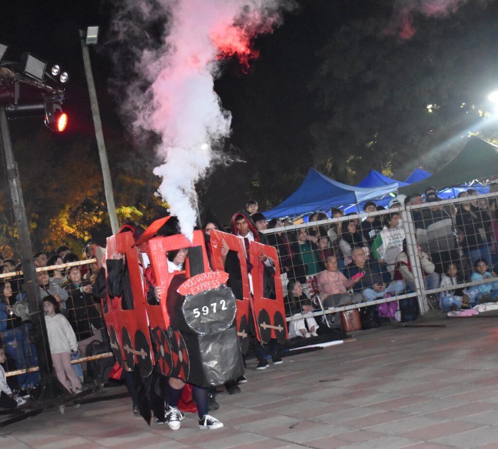 Los estudiantes de los distintos colegios secundarios de la ciudad fueron los grandes protagonistas de la noche, desplegando todo su ingenio y esfuerzo en espectaculares producciones artísticas. El público pudo disfrutar de complejas coreografías y creativos diseños de indumentaria y mascotas, evidenciando un crecimiento en el nivel del espectáculo año tras año.