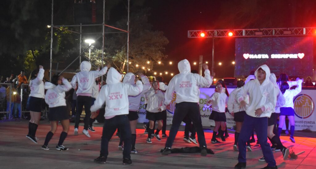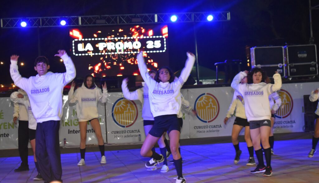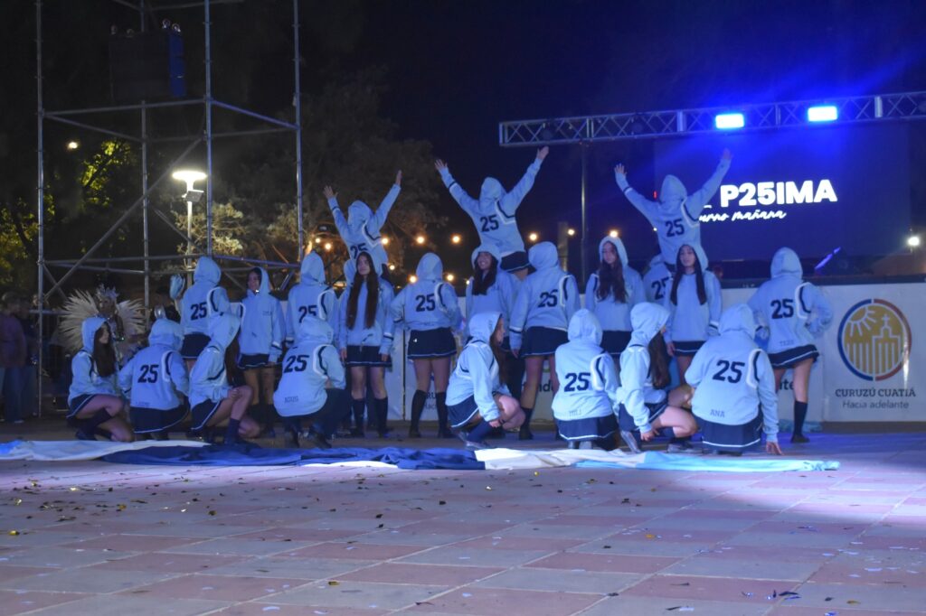 Curuzú Cuatiá, 11 de mayo de 2025.- El Anfiteatro “Quique Sorribes” de la Plaza General Paz fue el escenario de una noche de fiesta y talento, donde una multitud de familias y amigos acompañó el pasado sábado la tradicional Presentación de Buzos (PDB) de la “Promo 25”. El evento, que se ha consolidado como un clásico en el calendario de la Estudiantina local, fue organizado un año más por la Municipalidad de Curuzú Cuatiá, reafirmando su constante apoyo a la juventud.